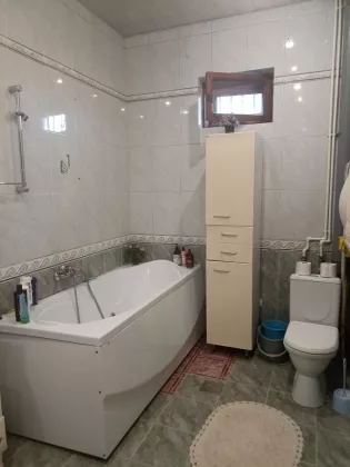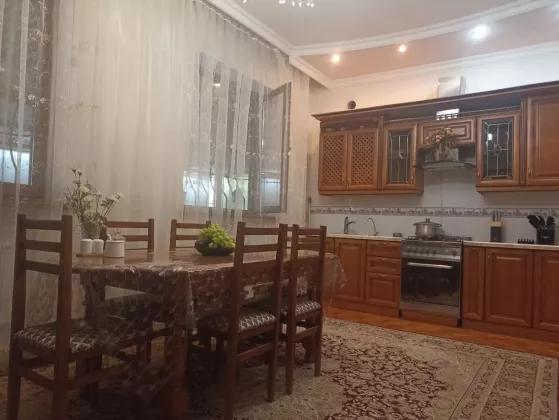 На 1-м этаже зал 30 м2, кухня 22 м2 с отдельной кладовой и котельной. Спальная зона из 3 изолированных спален по 20 м2 каждая и отделена холлом правильной прямоугольной формы 14 м2 и огромный с/у с душевой кабиной и ванной одновременно.