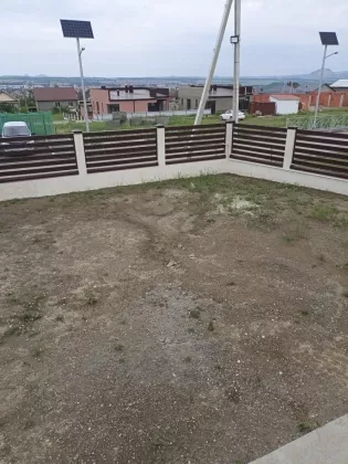 Участок довольно большой - 8 сот, нет дополнительных построек. Здесь можно прекрасно оборудовать мангальную зону, зону отдыха, бассейн, вольер для собаки, игровую площадку или построить дополнительное здание. Участок огорожен деревянным кленовым забором. Есть удобный подъезд к дому.