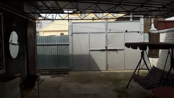 Двор просторный, с навесом, есть место для авто. Двор огорожен металлическим забором. Большой фасад - 20м.