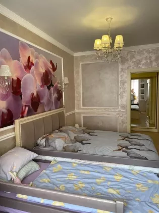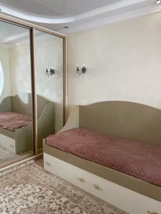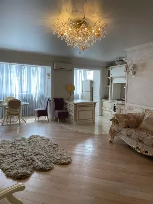Площадь квартиры - 93 кв.м., с добротным евро ремонтом и дизайнерской мебелью! Квартира выполнена в светлых и нежных тонах, со вкусом, без вычурности. Квартира очень теплая зимой и прохладная летом. Отдельный плюс - хорошая шумоизоляция. Ни Вы, ни Вам никто не будет мешать!