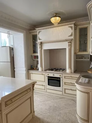 Жилые комнаты раздельные, большие, с высокими потолками и шикарными люстрами. Кухня очень просторная - 20 кв.м. На такой кухне можно не только готовить, но и принимать статусных гостей и проводить бизнес встречи!